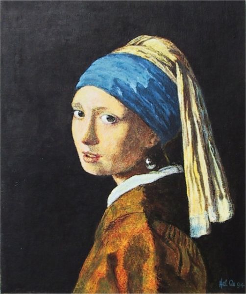 Mädchen mit Perle (nach Jan Vermeer)-47 x 64cm-Acryl auf Leinenkarton